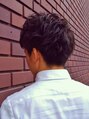 全体に大き目のしっかりした束感が出るようにパーマをかけて、サイドとバックをまったくつなげないツーブロックの刈り上げをアフターカットします。重ために見えて束感を出す粗めなディティールを入れています。