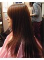ベース2センチくらいカットして、ラウンドレイヤーを入れ、セニンググラデーションで軽めに仕上げました。カラーは10レベルのアプリコットブラウンです。