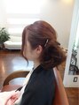 サイドに束ね大きめのカールで仕上げ前髪は少しカールつけて下ろしました。
