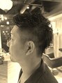 サイドからコメカミまで刈り上げて、斜めからパーマをON!この夏ワイルドで男気のあるショートスタイルです。hair designer tatsu