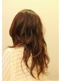 透明感のあるやわらかロング。レイヤーを入れて軽さを出したラフウェーブ。髪の間からこぼれる光で、涼しげで透き通った印象を与えてくれます。また、前髪をセンターパートにすることにより、上品で大人な印象に♪