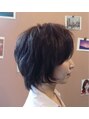 ハリがある髪質のお客様なので,1ヶ月半前に毛先に動きが出るようにパーマをかけ,今回はネープ辺りを絞るようにカットし,7レベルのアッシュブラウンでカラーリングしました。ホームケア商品もいつもしっかり使っていただいてるので,髪の状態もとても良いです。