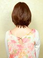 低めのグラデーションでカットしたボブスタイル。モデルさんの可愛らしさを活かすようにカット。中間から毛先にスライドカットを入れてひと工夫。