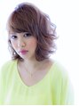 顎下のボブベースでバングは少し短めにカット。内側は少し毛量をスライドカットで調節して動きを出します。パーマはMIXに根本、中間巻きを入れランダムとラフさを出しています。カラーは11トーンのスモーキーベージュで。