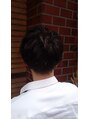 こめかみから襟足まで刈り上げた2ブロックヘア!トップの毛を長めに残してしっかりパーマで雰囲気UP!