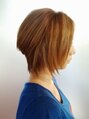 トップとバックに高さを出した前下がりショート。自然に乾かすだけで丸みができるのでスタイリングが楽です。カラーはハイライトをポイントで入れてあるので、フワっとした時の立体感が綺麗にでます。ベースは11レベルのアッシュです。