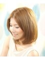 重めのシルエットで、毛量を調整する事で重軽なほつれスタイルにしました★ひし形フォルムも特徴です♪前髪を残すことでカラーもヌーディーかつグラマラスなイメージになります。