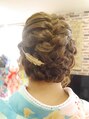 トップを大胆に編み込んで、ロープ編みと組み合わせてセットしました♪飾りも流行りのバレッタです♪