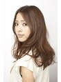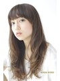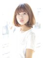 前髪は目元ぎりぎりの厚めバングで目力UP。 全体的に丸みのある女性らしいフォルムに仕上げるため、毛先にグラデーションを入れてワンカールパーマをかけています。 パーマをかけることにより、乾かすだけで仕上がります。〔自由が丘 AUQWA〕