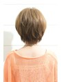 軽やかショートボブトップにレイヤーを入れた軽さがあるショートカット色はペール調の明るいブラウンで動きのあるスタイルに少し大人のショートカットです。