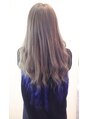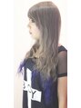 根元から中間まではグレーアッシュ毛先はネオンブルーのツートンカラーでクールな感じのアッシュカラーです。