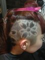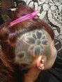 サイドからバックまでにかけてバリカンアートで、花と花びらを描きました。カラーで色もつけてあげると、もっと花っぽく見えますよ♪♪
