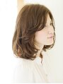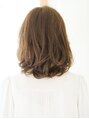 ベースを鎖骨位置にカット、毛先を重ために残しトップにレイヤーを入れふんわりと柔らかな印象に。太めのロッドでランダムに毛先が動くパーマをかけてナチュラルで華やかさをプラス長めの前髪が大人カワイさを引き立てます。