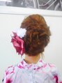 淡くて涼しげな浴衣にピンクの帯が素敵です♪髪型は、三つ編みを数本作ってまとめたシンプルなスタイルです★
