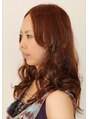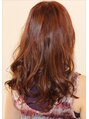 ロングスタイルにローレイヤーをいれて、中間から毛先にスライドカットを入れました。カラーリングはオレンジ系をいれてます♪