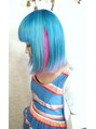 夏らしくブルー系カラー+ヴィヴィッドカラーで☆全体ブリーチ後内側にピンク、表面にブルーを入れました。