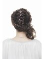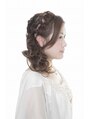 パーティーヘアーです。シフォンのリボンを一緒に編み込んであります裏編みと表編みを混ぜてルーズに大人っぽく仕上げました。