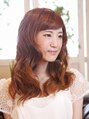 ロングですが顔周りにだけあご下くらいの毛束をつくりフェイスラインにかかるようにしています。小顔効果と可愛さアップのダブル効果!
