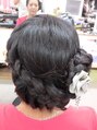 ロングヘアーの編み込みアップ。ミディアムの長さでもいけます。着物でも結婚式でも。