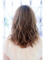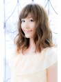 リバース/フォワードに巻いたウェーブ。エレガントになりすぎない様に顔周りや前髪で可愛らしさを。オレンジベージュ/フェミニンな質感/ゆるふわ/ミディアムロングのモテ髪/