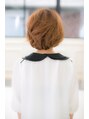 ベースはあごラインのボブ。トップににレイヤーを入れてナチュラルな空気感を演出。さらに毛先パーマで柔らかさをプラス。
