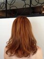 ローレイヤーベースにゆるめのパーマです。イエローベージュ系の色で柔らかい印象に。伸ばし途中の方にオススメです。