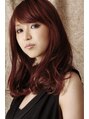 深みのあるレッドのカラーと、大きめの無造作なカールでルーズに仕上げたクールフェミニンな重めスタイル