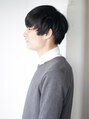 シンプルなマッシュショートです。このスタイルのポイントは左サイドから右サイドに向かって前髪を流している事。斜めからみると骨格も綺麗に見えるのがこのスタイルの特徴。目の上の前髪を重めに切る事で雰囲気を出しやすくしています。