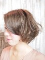 毛先に大きく2回転のランダムなカールを積み重ね、カラーは深みのあるアッシュ系で秋らしく。