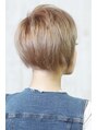 ハチ上だけを残したツーブロックのカジュアル耳かけボブ。髪を下ろしている分には、ショートバングの通常フレンチガーリーボブのスタイルに。ブリーチ後にヘアカラーをONしているので、ヌーディーカラー等様々な色味を出す事が出来ます。