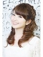 編み込みをサイドに集めてほつれウェーブで毛先に動きを出したヘアセット。あまり派手にしたくないけど可愛くしたい!そんなオーダーで人気のひし形スタイル。編みこみをラフにして、耳後ろでふんわりラフなカールで可愛くなりたい方は是非!