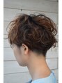 やわらかなパーマスタイルに2ブロックをミックスしたショートスタイル☆モデルさんの雰囲気にあわせて、バングは、やや重めに(^^)ちょっぴり外国人風なショートにしあげてみました☆