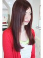 カットはワンレングスで前髪をアゴラインでカットして、前のカラーが明るかったので、ヘアカラーはピンクレッドを入れました。