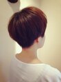 前髪はおでこの半分くらいの短さで少し個性を!もともと直毛の方で襟足は甘く刈りあげ、前にかけたパーマを生かしたスタイルです
