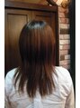 今回は前髪カット+疎水トリートメントカラー(エクセレント)をしました。疎水トリートメントカラー+ホームケアもしっかりされてるので、髪のコンディションもかなり良くなってきました。サラツヤですね。