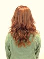 すそに厚みを残したままローレイヤーを入れたミディアム。顔周りはアゴラインでシャギーを入れた姫カットに。エアウェーブで平巻き、フォワード、リバースをランダムに混ぜてパーマをかける。カラーは9トーンのチョコレートブラウン。