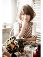 ひし形シルエットの耳かけボブ。ほつれたウェーブをだしてガーリーテイストに。ベージュ系のヌーディーなカラーがやわらかさを出します。