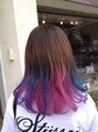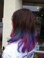 ベースはショコラブラウンを。中間から毛先にはパープルとブルーを♪