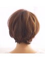襟足を短く切り込みながらフォルムを引き締める事で頭の形をキレイに見せます。トップからの束感をスライドカットで演出。揺らぐやわらかさと前髪を適度に短くする事で、ボーイッシュになりやすいショートスタイルもやさしくオトナ可愛い印象に◎