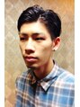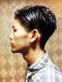 ツーブロックスタイルにパーマをかけて黒髪で大人な雰囲気に。メガネも似合います。ツーブロック/ビジネス/七三/束間/ニュアンス/トラッド/スパイキー/アップバング/ソフトモヒカン