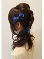 サイドからバックにかけて編み込みを入れた、サイドハーフアップスタイル。パーティーや簡単アレンジにおすすめです。
