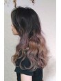 ロングの重めレイヤーに、中間から毛先にかけてブリーチ2回した後プラチナシルバーとバイオレットでカラーリング☆黄味をおさえて艶感と透明感を出しました♪