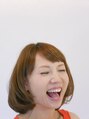 直毛で、ペタンコになりやすい髪質のモデルさんでしたのでトップにボリュームがでるようにカット。ブラウンベースに明るめのベージュゴールドのハイライトで立体感を出しました。