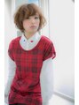 パーマで絶妙な毛束感をだして小顔効果も!伸ばしかけのショートアレンジにもおすすめ♪厚めバングにすれば更にドーリーヘアに!ハイトーンのカラーで甘さもアップ☆ポップな