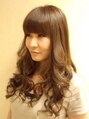 とろんとしたような質感や艶感がでるようにショコラベースのブラウンでカラー。カットは毛先のみ動きがでやすいよう量を調節しています。(銀座)