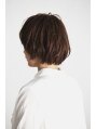 黒髪と言ってもそこまでじゃないこげ茶のカラーと組み合わせた大人かわいいボブ。厚めの前髪と包み込んでくれる顔周りで小顔を出します。骨格にあわせて切ったスタイルでルーズ感のあるマッシュスタイルですがトータルバランスで見ると頭が締まって見えます。