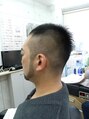 モヒボウズにヒゲ!サイドは3ミリの刈り上げフロントは3ミリから始まりショートモヒカンの天頂へ、クラウンは長5センチ、根梳きをし遊びを持たせたスッキリモヒカン、ヒゲは2ミリにそろえサッパリ表現、ファッションを選ばないサッパリ肉食系モヒボウズ。