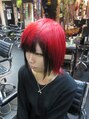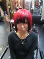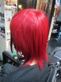 顔周りは黒にしてそのほかを赤にカラーしました★あとフェイスラインに黒のエクステをつけて長さを出しました!!