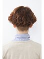 マッシュボブと刈り上げをMIXさせた個性派スタイルです。パーマは根本まで巻かずハチ下部分にカールが強調されるように配置してあるので円盤型のスタイルになります。カラーはオレンジブラウンで元気で明るい雰囲気を演出してます。