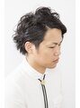 フロントが長いセイムレイヤーにランダムなパーマを合わせたスタイルです。右サイドを流してスッキリとした大人っぽい雰囲気を演出しています。
